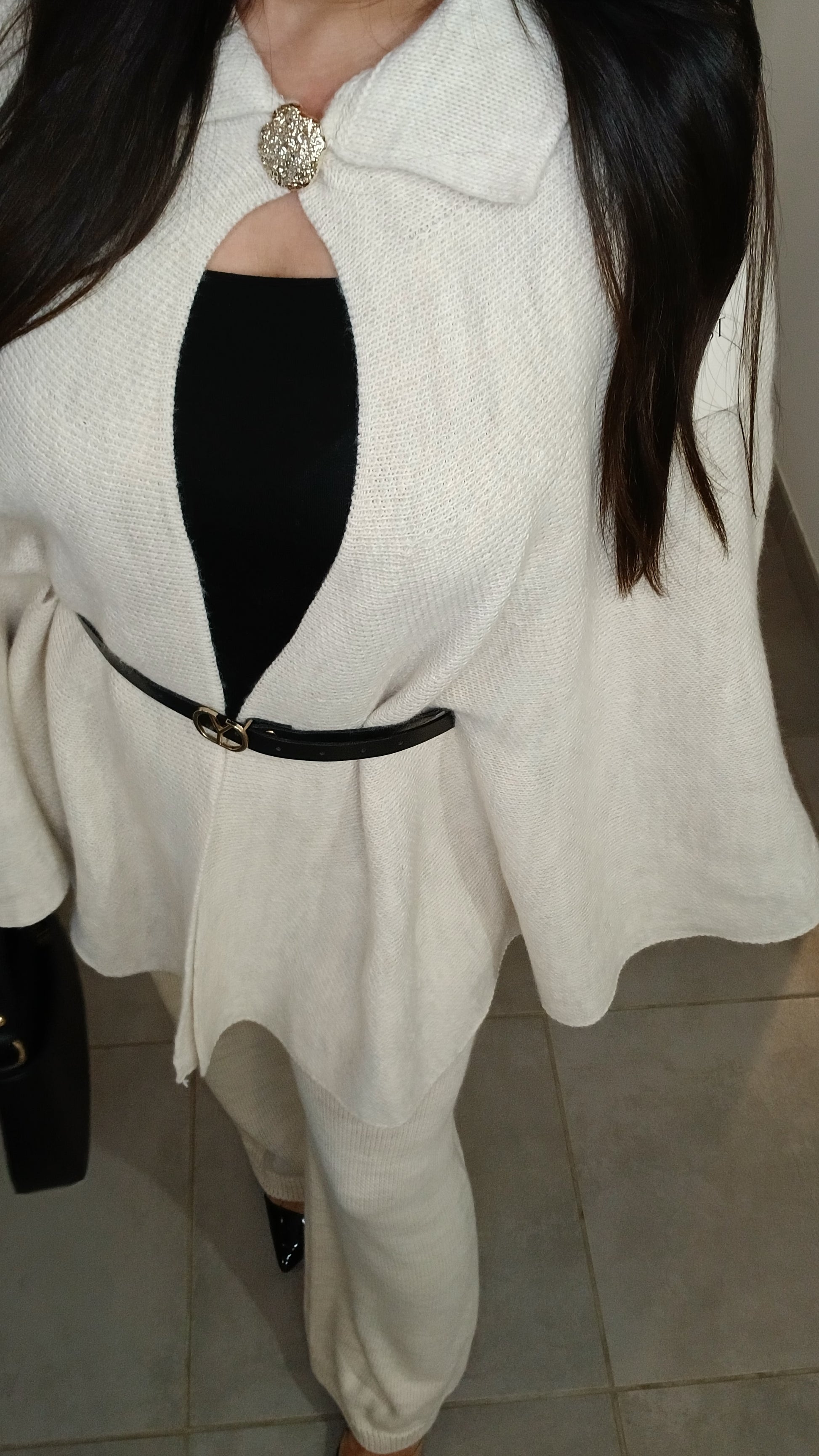 Adoptez le charme cosy-chic de notre ensemble maille beige Fashion Muse Avenue, composé d’un pantalon fluide élastique à la taille et d’un cape-cardigan ceinturé qui se ferme sur le haut par un bouton doré. Doux, moderne et élégant, il structure la silhouette tout en offrant un confort absolu.