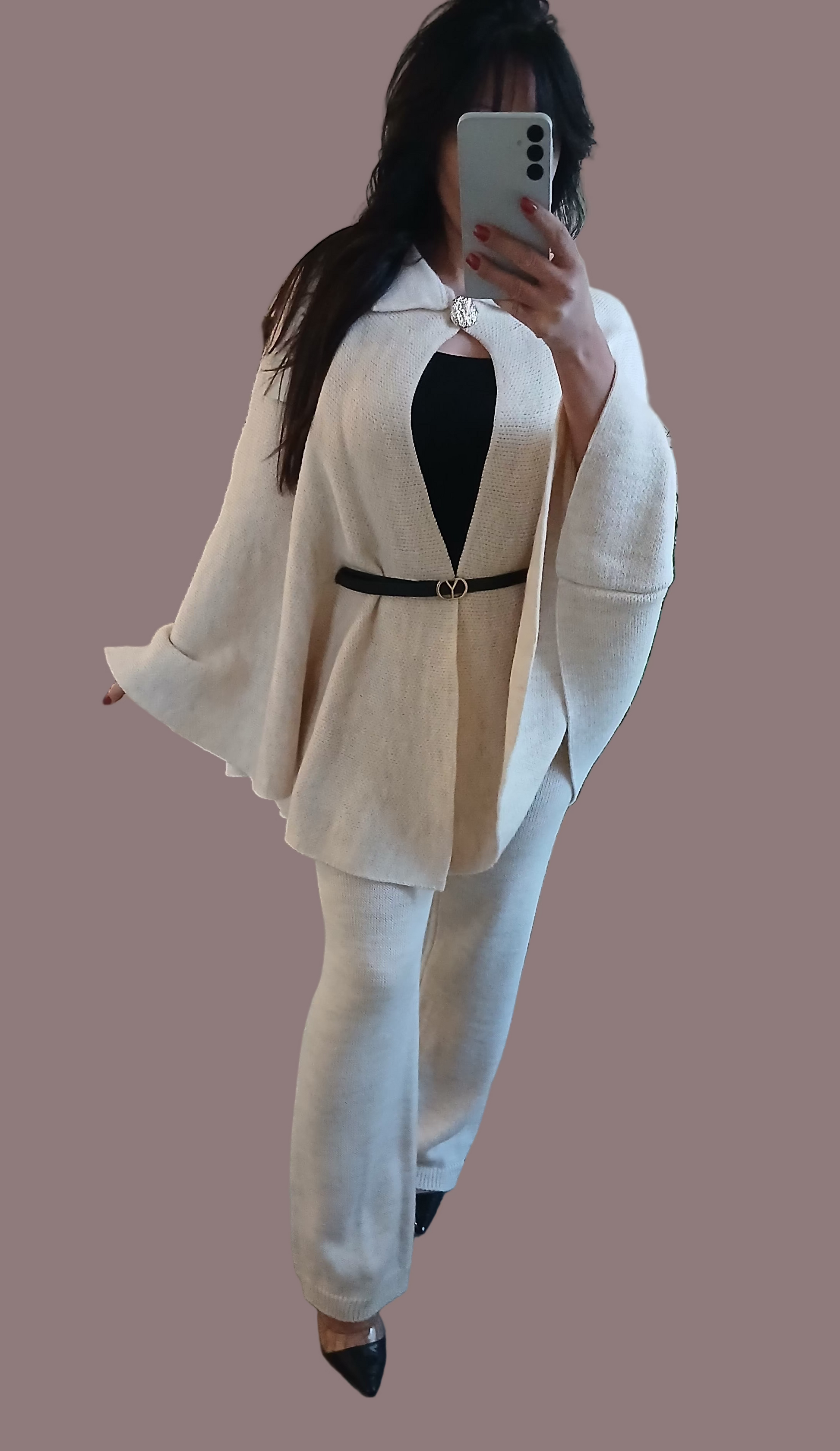 Ensemble Maille Beige Femme – Cape Cardigan Ceinturée & Pantalon Chic | Fashion Muse Avenue