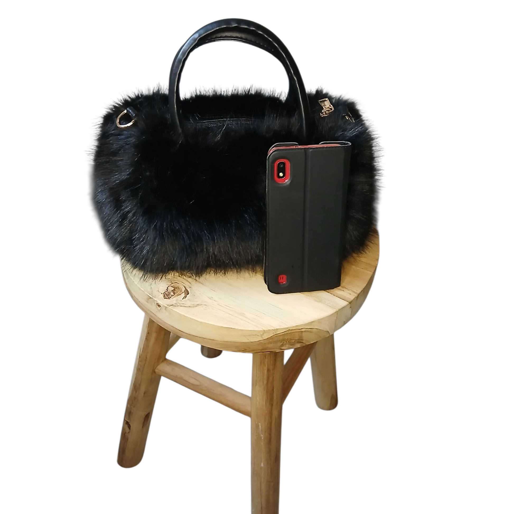 Petit sac noir en fausse fourrure – Sac tendance & Élégant