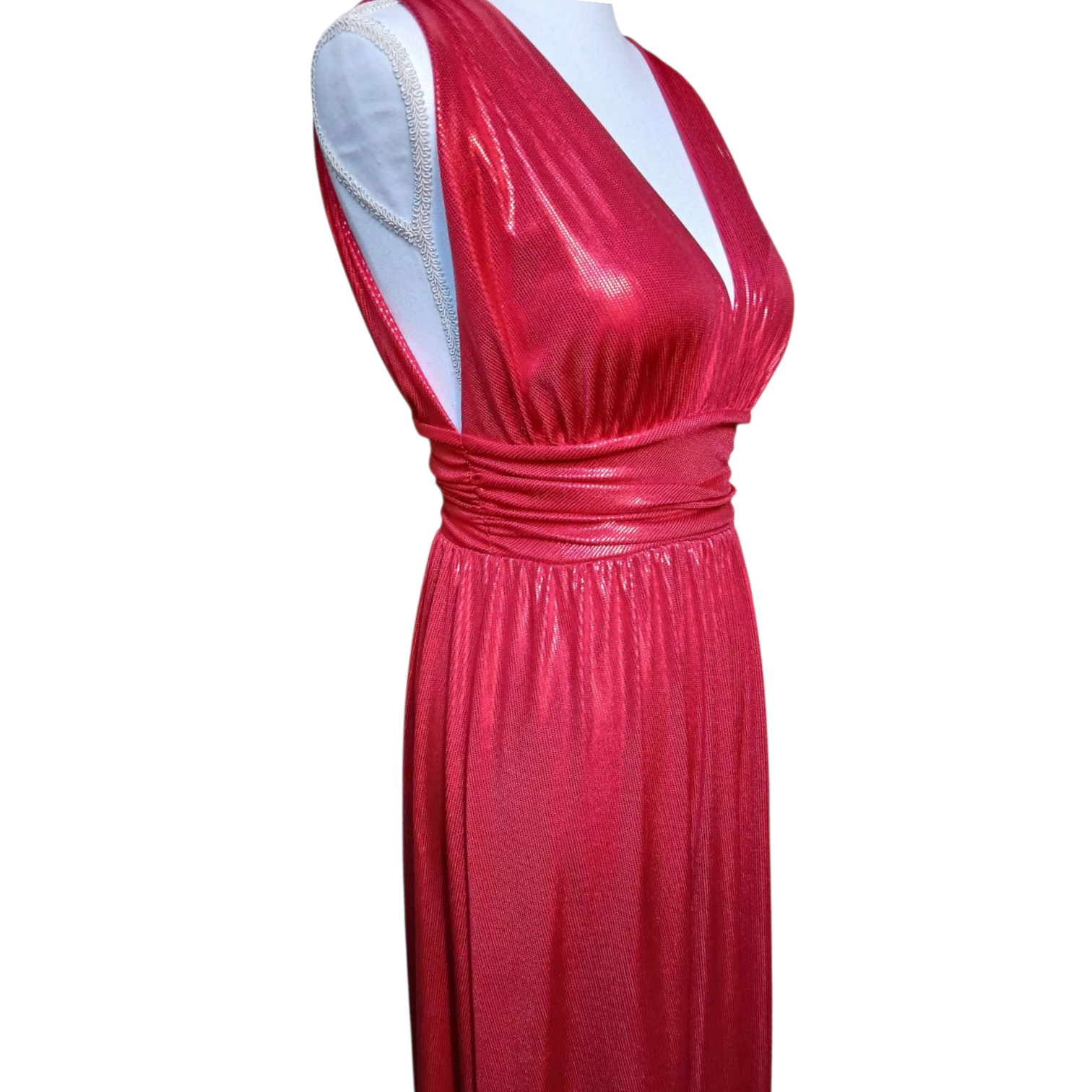 Robe de soirée longue rouge fendue en tissu brillant – Élégante et glamour